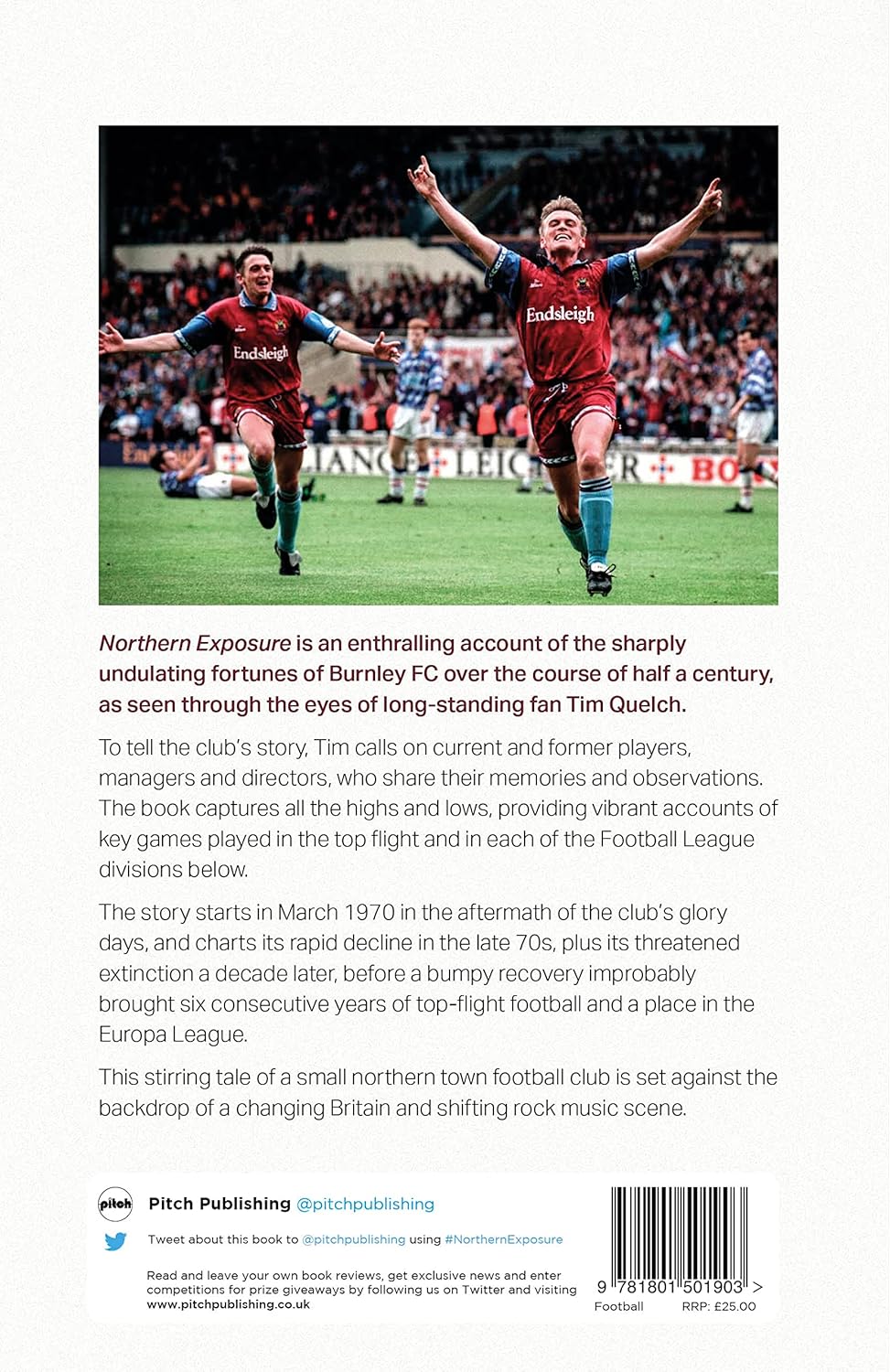 Northern Exposure is an enthralling account of the sharply undulating fortunes of Burnley FC over the course of half a century, as seen through the eyes of long-standing fan Tim Quelch. To tell the club’s story, Tim calls on current and former players, managers and directors, who share their memories and observations. The book captures all the highs and lows, providing vibrant accounts of key games played in the top flight and in each of the Football League divisions below. The story starts in March 1970 in the aftermath of the club’s glory days, and charts its rapid decline in the late 70s, plus its threatened extinction a decade later, before a bumpy recovery improbably brought six consecutive years of top-flight football and a place in the Europa League. This stirring tale of a small northern town football club is set against the backdrop of a changing Britain and shifting rock music scene.
