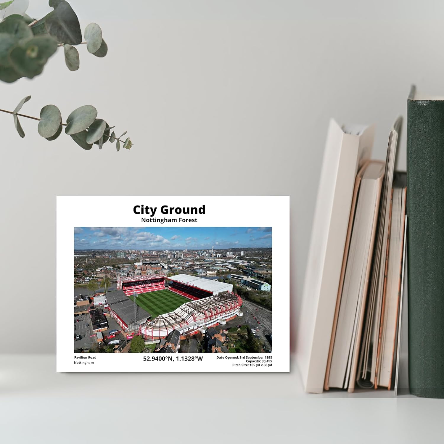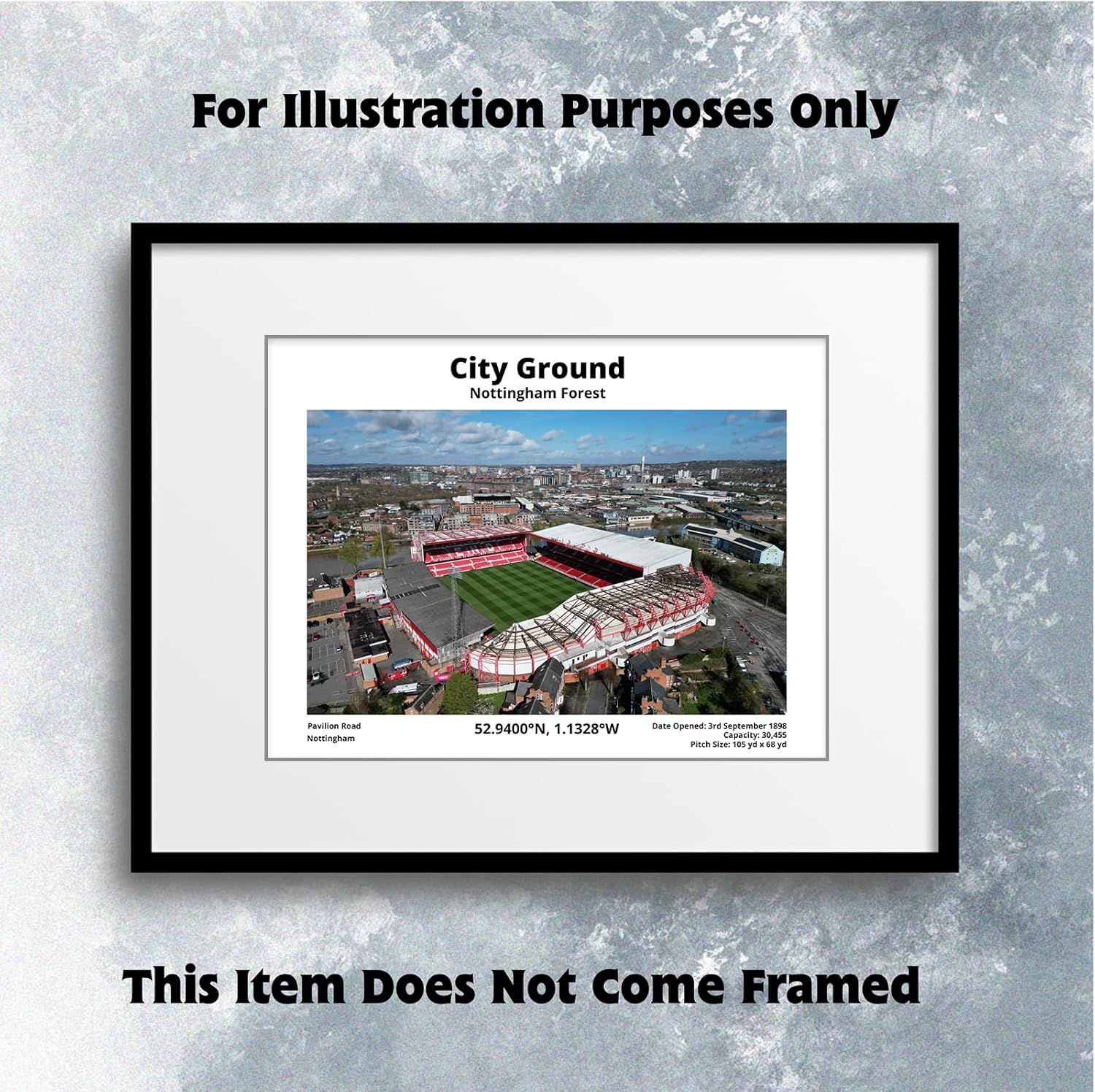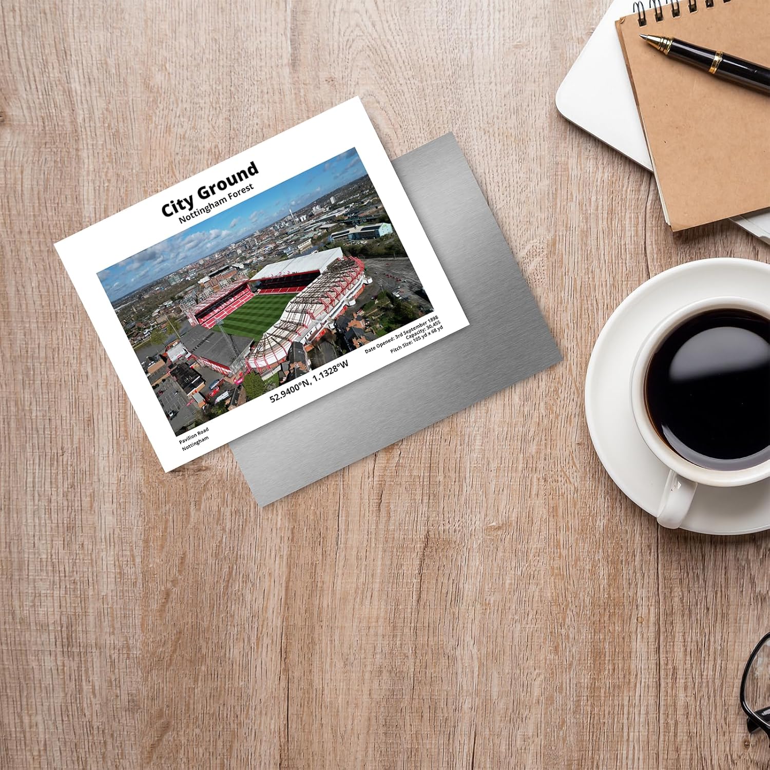 “Nottingham Forest City Ground Co-ordinates Metal Plaque 200mm x 150mm Celebrate the passion of football with this stunning 200mm x 150mm Metal Plaque featuring a high-resolution image of your favorite stadium. Crafted from premium 3mm thick straight-cut aluminium, each piece is unique, adding a touch of natural elegance to any space. The detailed image showcases the stadium along with its address, seating capacity, and the date it opened, making it an ideal keepsake for any football fan. Can be Personalised on Request Personal Message will be inserted under the co-ordinates Printed using a 6-ink premium sublimation system, this Metal Plaque will not fade or tarnish over time, ensuring that the vibrant colors and intricate details remain as vivid as the day you received it. Whether placed on a desk, bookshelf, or in the office, this slate comes with a sturdy stand for effortless display. Perfect as a gift for the football enthusiast in your life or as a personal addition to your collection, this Metal Plaque is a timeless piece that celebrates the love of the game and the beauty of these iconic stadiums. If you don’t see your favorite team listed, just contact us and we’ll be happy to help. We can create custom designs for any stadium, making sure you get the perfect tribute to your club! Please Note:- This item does NOT include any wall Hanging Fixings or Brackets”