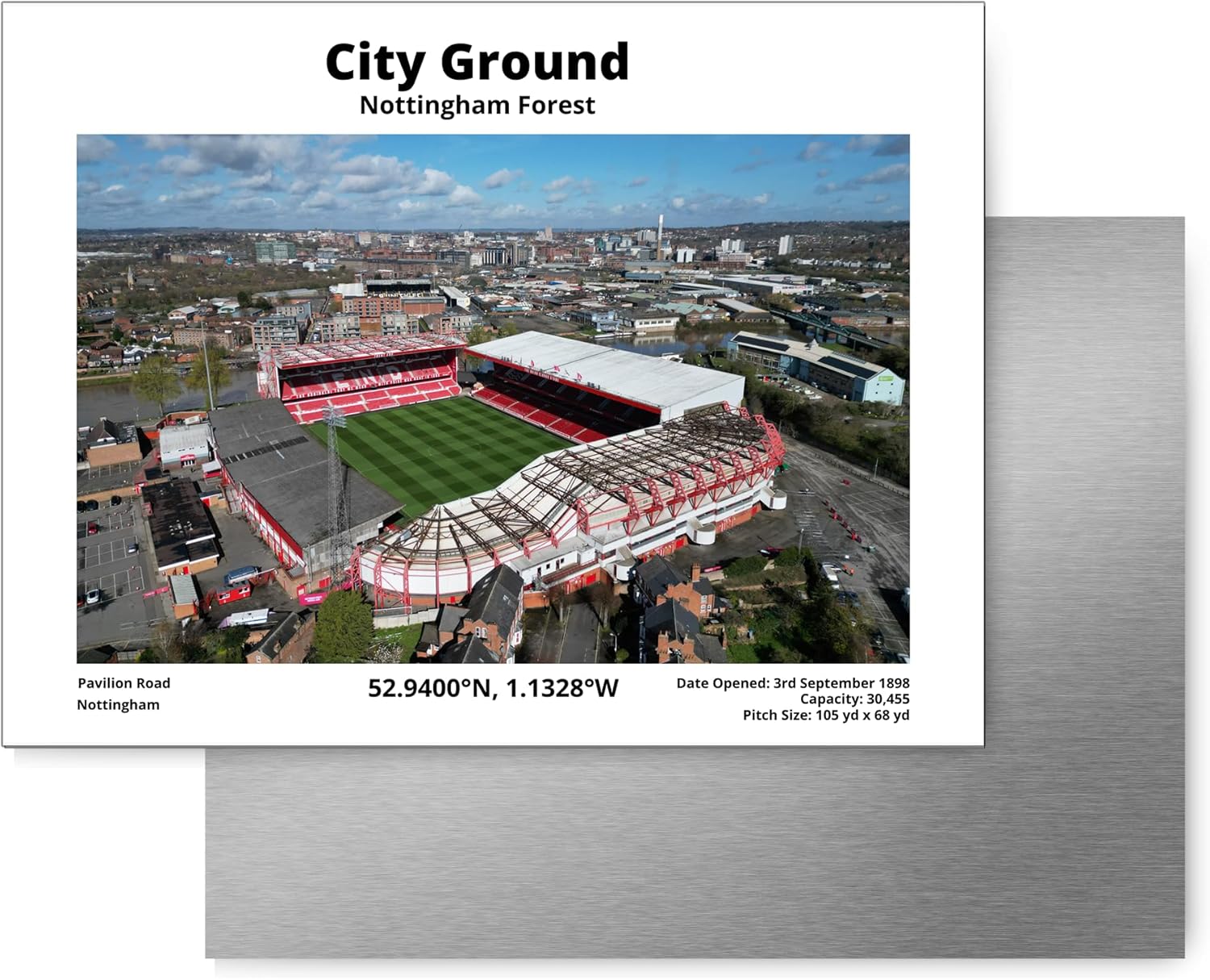 Nottinghams City Ground Metal Plaque – 200mm x 150mm – Coordinates Gift for Forest Fans