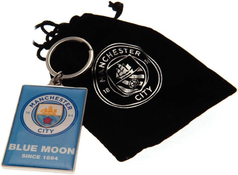 Official MANCHESTER CITY FC Blue Moon Keyring In Velvet Gift Bag