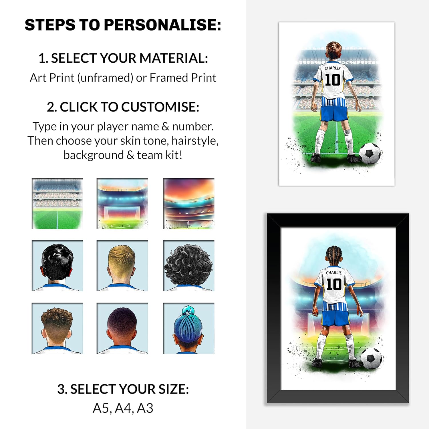 Brighton Football Gifts for Boys: this Brighton Hove and Albion football wall art is excellent as football gifts for boys. If searching for Brighton football posters for boys bedroom or Brighton Fan Art, then your football fan will love this. Suitable as gifts for 5 year old boys and up.