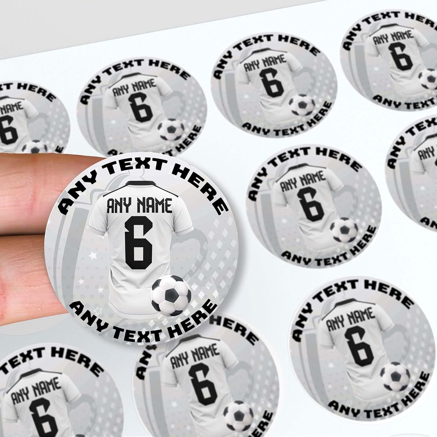 Add a personalised touch to your football-themed celebrations with these striking 45mm round stickers. Each pack includes high-quality stickers featuring a classic football jersey design, which can be customised with any name and number of your choice. The elegant white text border and football motif create an eye-catching contrast against the sophisticated grey background. These versatile stickers are perfect for enhancing party bags, sweet cones, cake boxes, or beverage containers during sports events, birthday parties, or team celebrations. The clean, professional design incorporates stars and geometric patterns for added visual appeal. Whether you’re organising a children’s football party or adding team spirit to your event supplies, these customisable stickers offer a premium finishing touch. The generous 45mm size ensures your personalised text remains clearly visible, while the multiple stickers per sheet provide excellent value for various decorative needs.