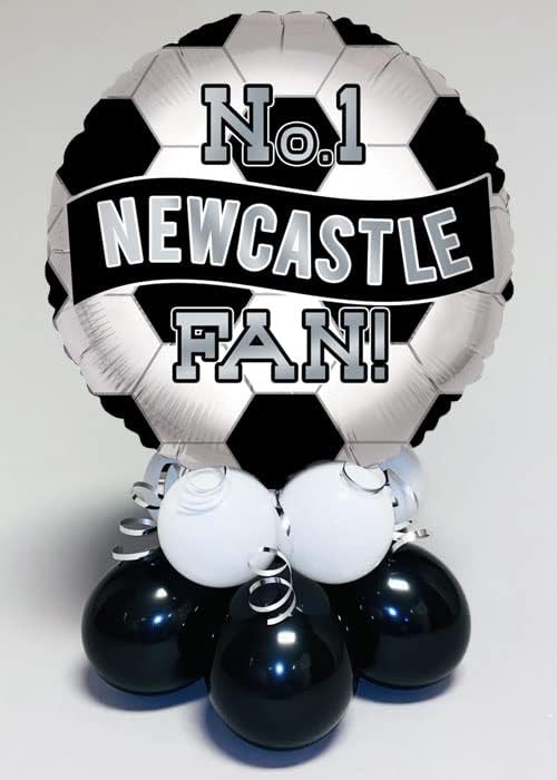 This amazing balloon centre piece is perfect for a Newcastle United Football fan. This foil balloon centrepiece includes a round black and white Newcastle No 1 Fan football design foil balloon that is attached to a black and white 10 balloon base. This centrepiece measures approximately 53 cm. Once inflated the balloon will last approximately 7 days. Comes fully inflated and assembled.