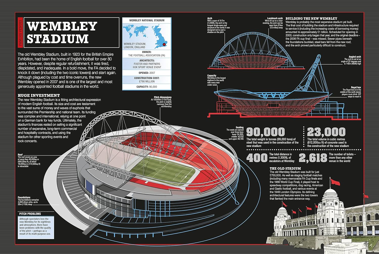 – Stats and fact boxes profile players, managers, fans, national teams, and club.