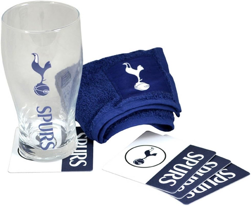 The official Tottenham Hotspur FC Mini Bar Set includes a pint glass, 4 Beer mats and a bar towel, all featuring the Tottenham Hotspur FC club crest. This Mini Bar Set makes a great gift for any Tottenham Hotspur supporter, perfect for a night in watching the big game. This is an officially licensed Tottenham Hotspur FC product.