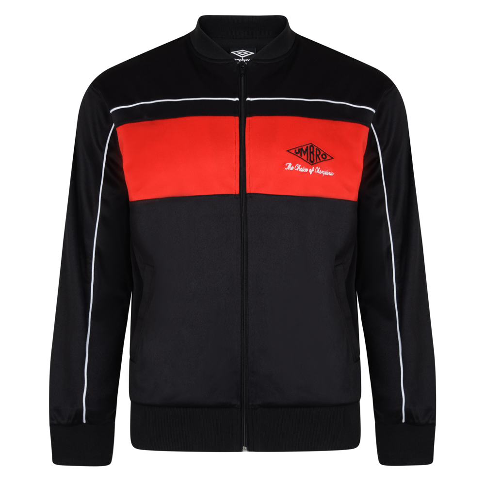 Umbro Choice of Champions Black Track Jacket This great retro inspired piece of Umbro branded sportswear. Show your favourite football teams colours with this classic vintage style sports product. Team it up with your Score Draw retro football shirts and support your club today.