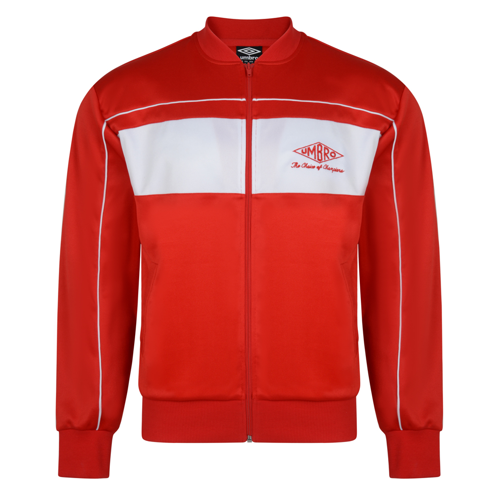 Umbro Choice of Champions Red Track Jacket This great retro inspired piece of Umbro branded sportswear. Show your favourite football teams colours with this classic vintage style sports product. Team it up with your Score Draw retro football shirts and support your club today.