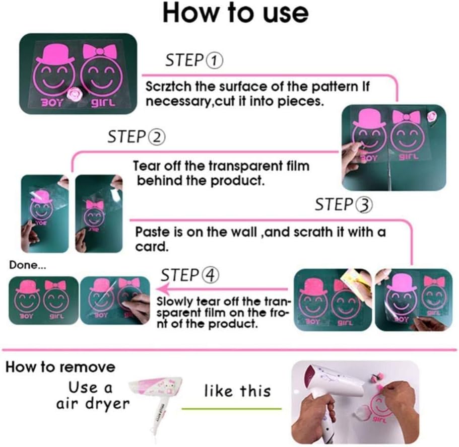 【It is easy to use】 please see the picture to know how to use the sticker, so you won’t have to deal with any messy trial and error. Stick in accordance with the picture or DIY in your own idea. And it can be cleanly removed without damaging your walls.