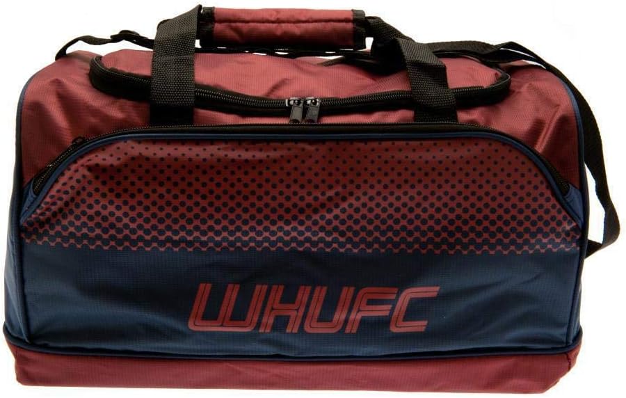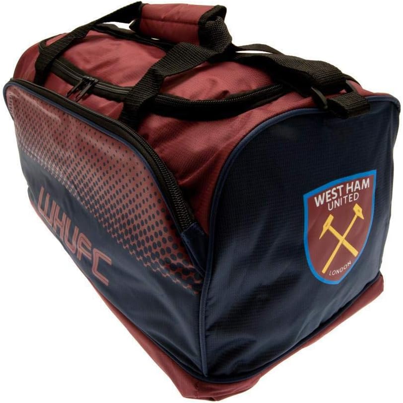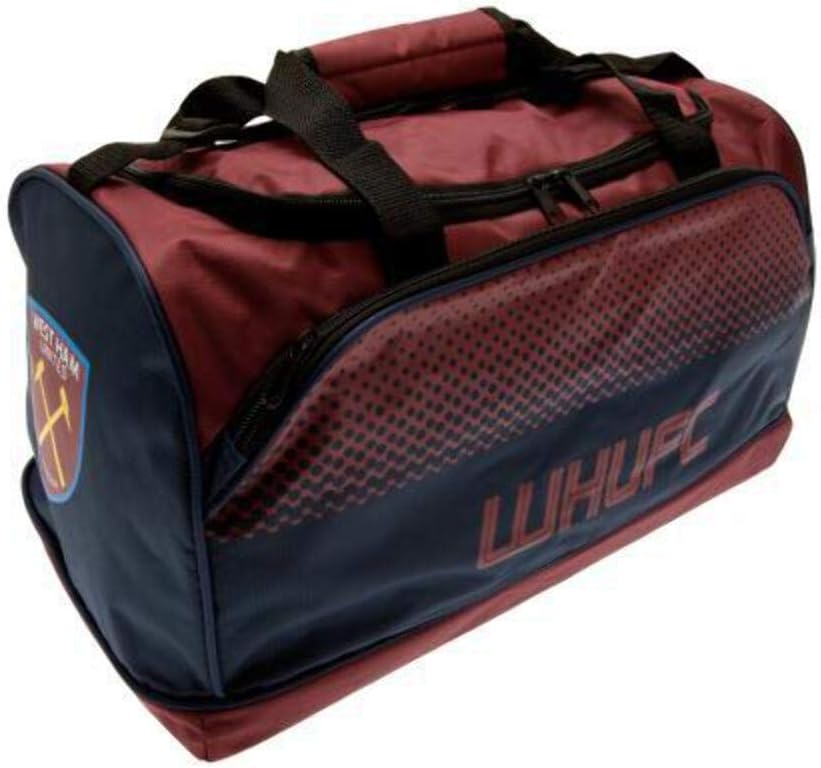 The West Ham Fade Holdall Bag is Navy blue and Burgundy in colour and features text WHUFC and club crest on both side ends. It comes with an adjustable shoulder strap and carry handle. It has a main compartment with zip fastening ideal to store and carry your belongings. It is made of 100% Polyester and measures approximately 25x22x42cm. The holdall bag is perfect for work, gym or casual outing. This is an official licensed merchandise.