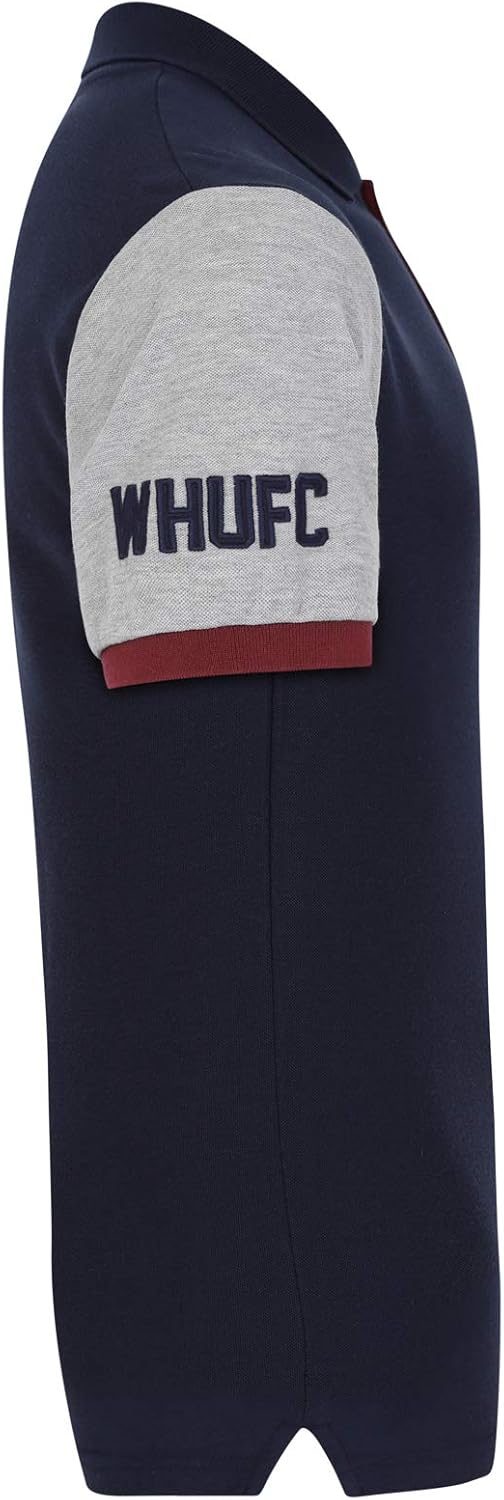 West Ham United FC Official Mens Contrast Sleeve Polo Shirt Navy Crest 3XL