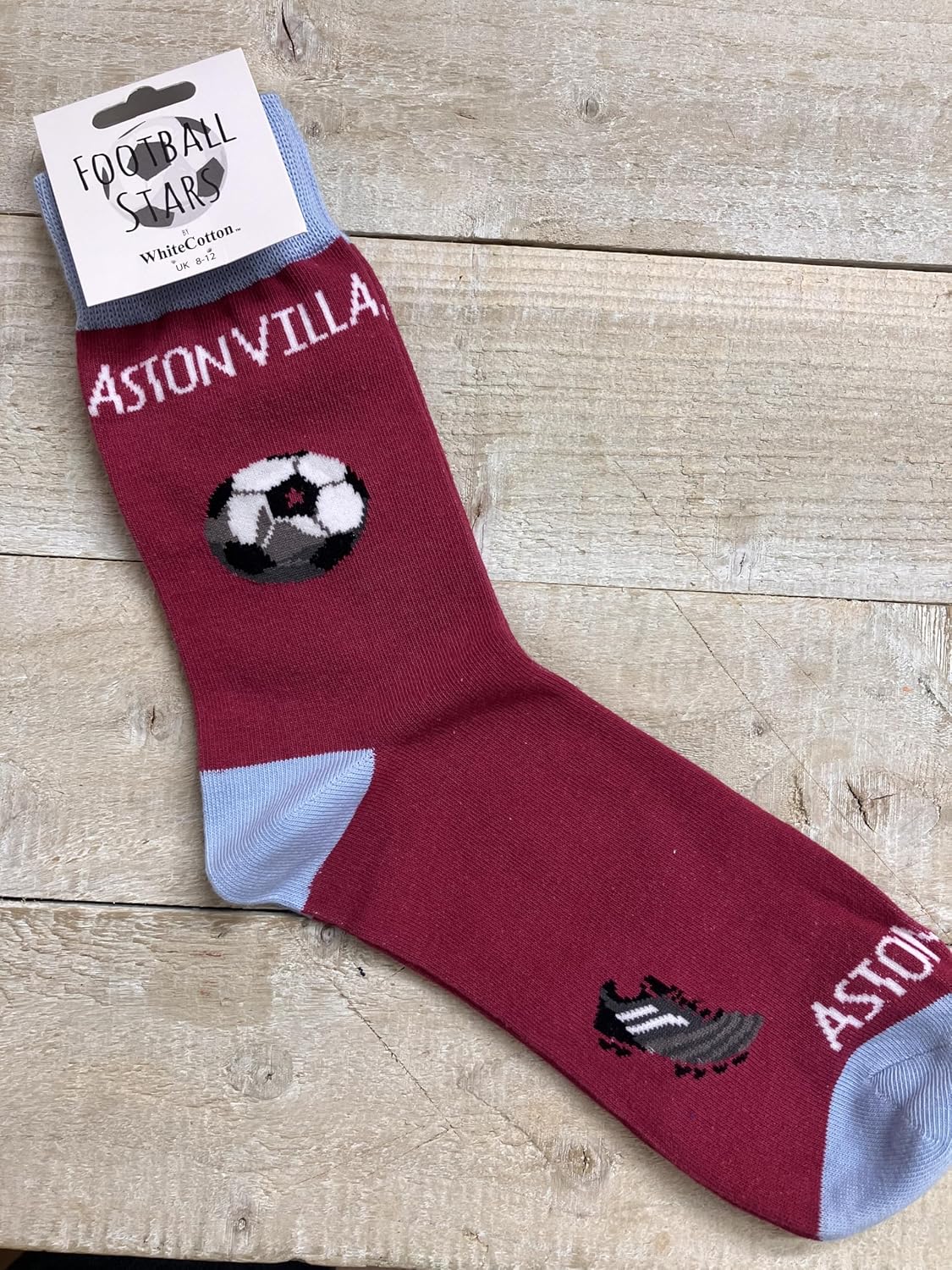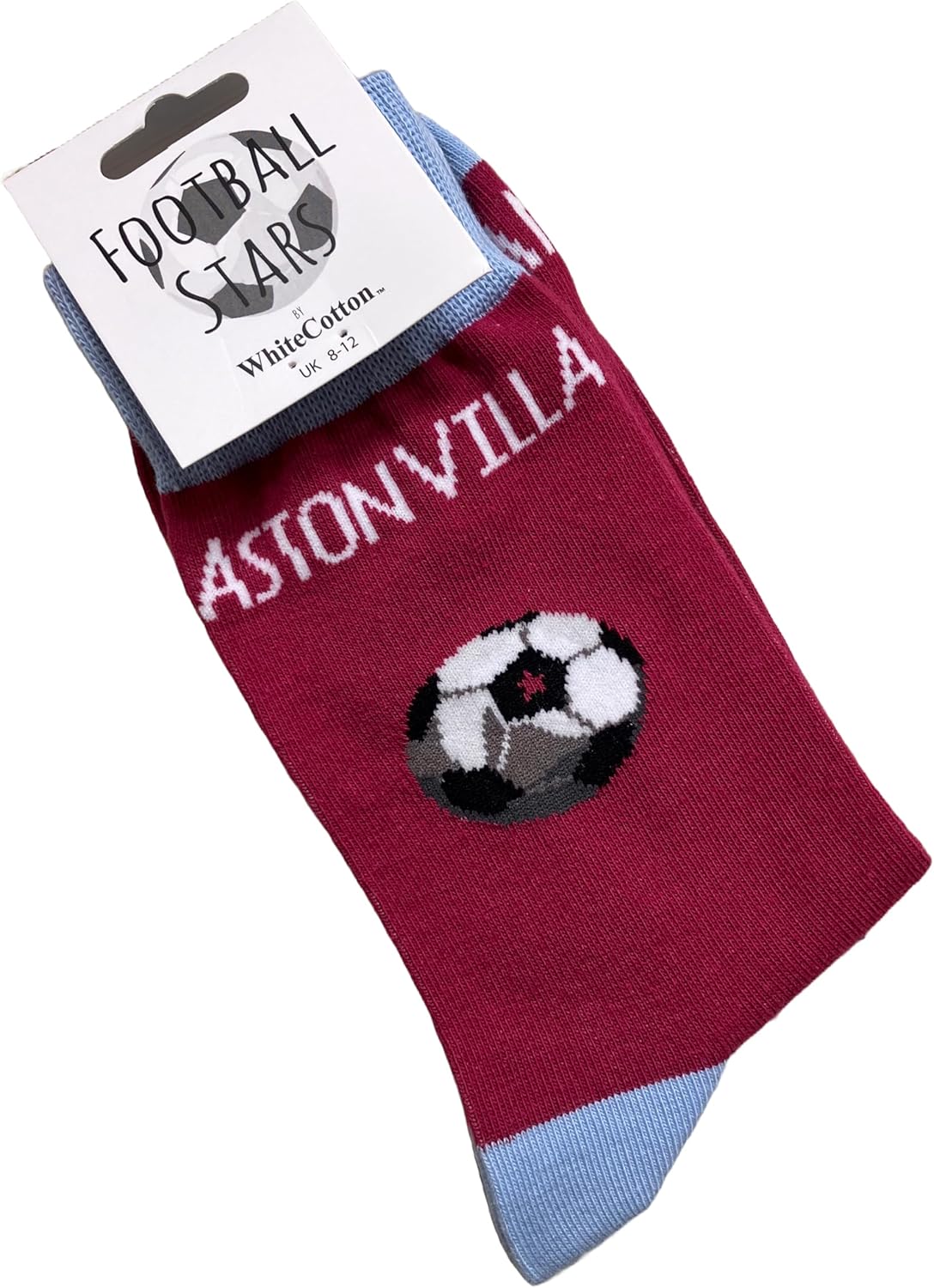 WHITE COTTON CARDS Aston Villa Villians FC Football Club – BOLD COLOUR Football Fan Novelty Socks. Size UK Small 2-7 (S-FB13-S)