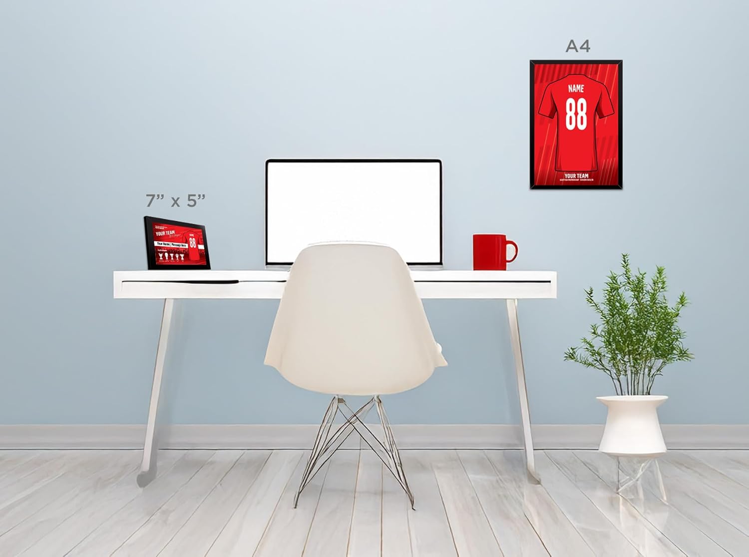 At Personalised Team Prints, we create bespoke 7″ x 5″ framed prints in landscape orientation depicting your supplied details.
