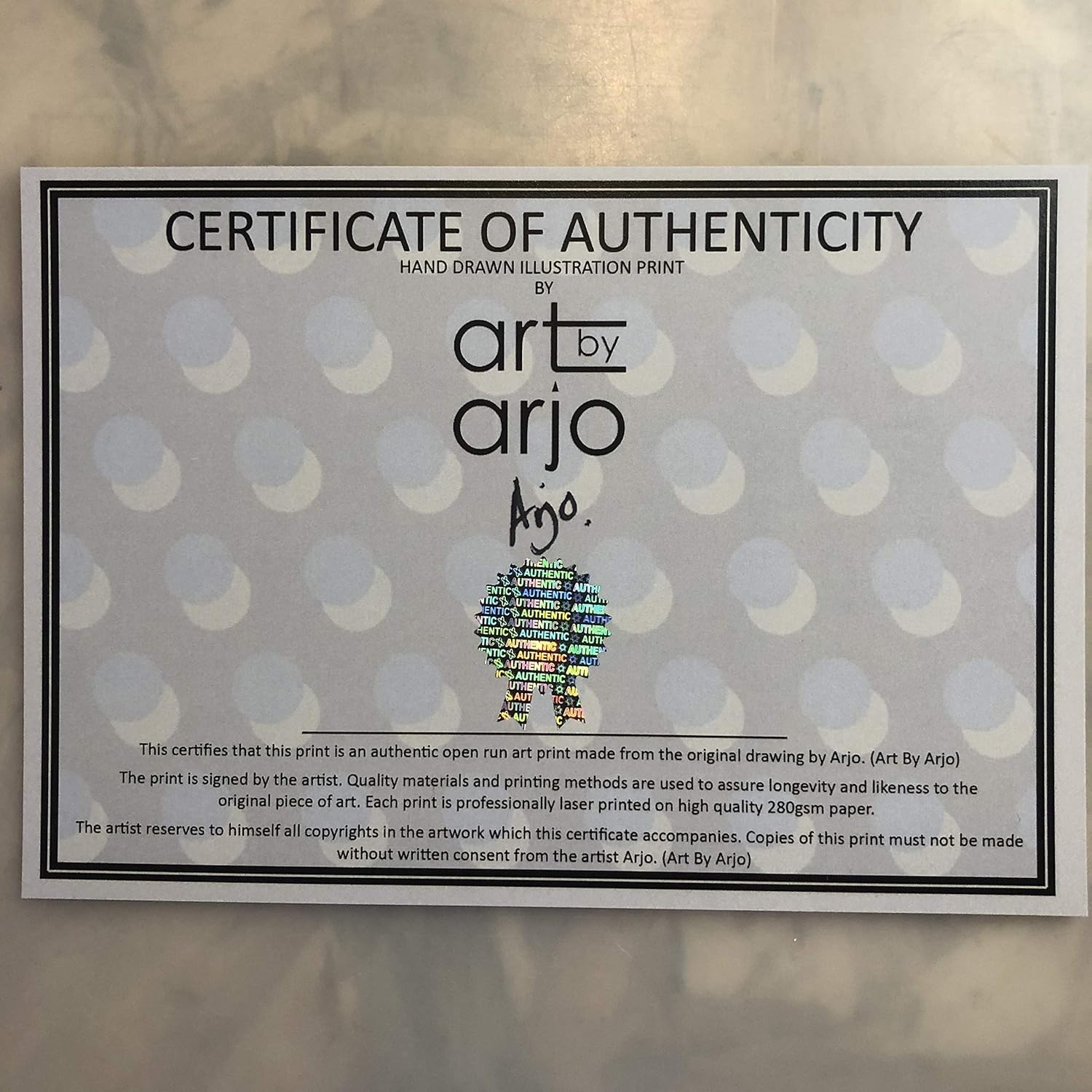 Each print order arrives with A Certificate of Authenticity.